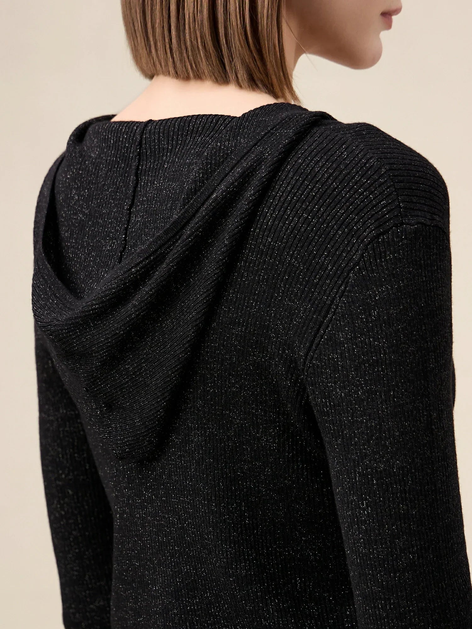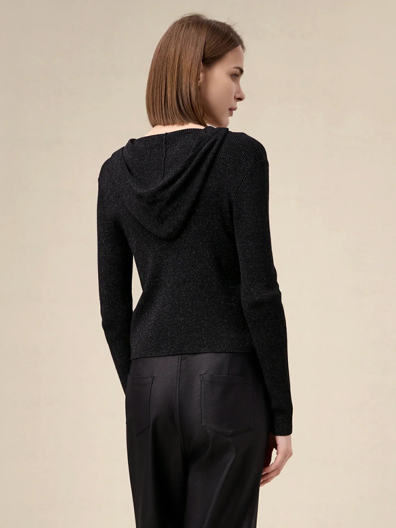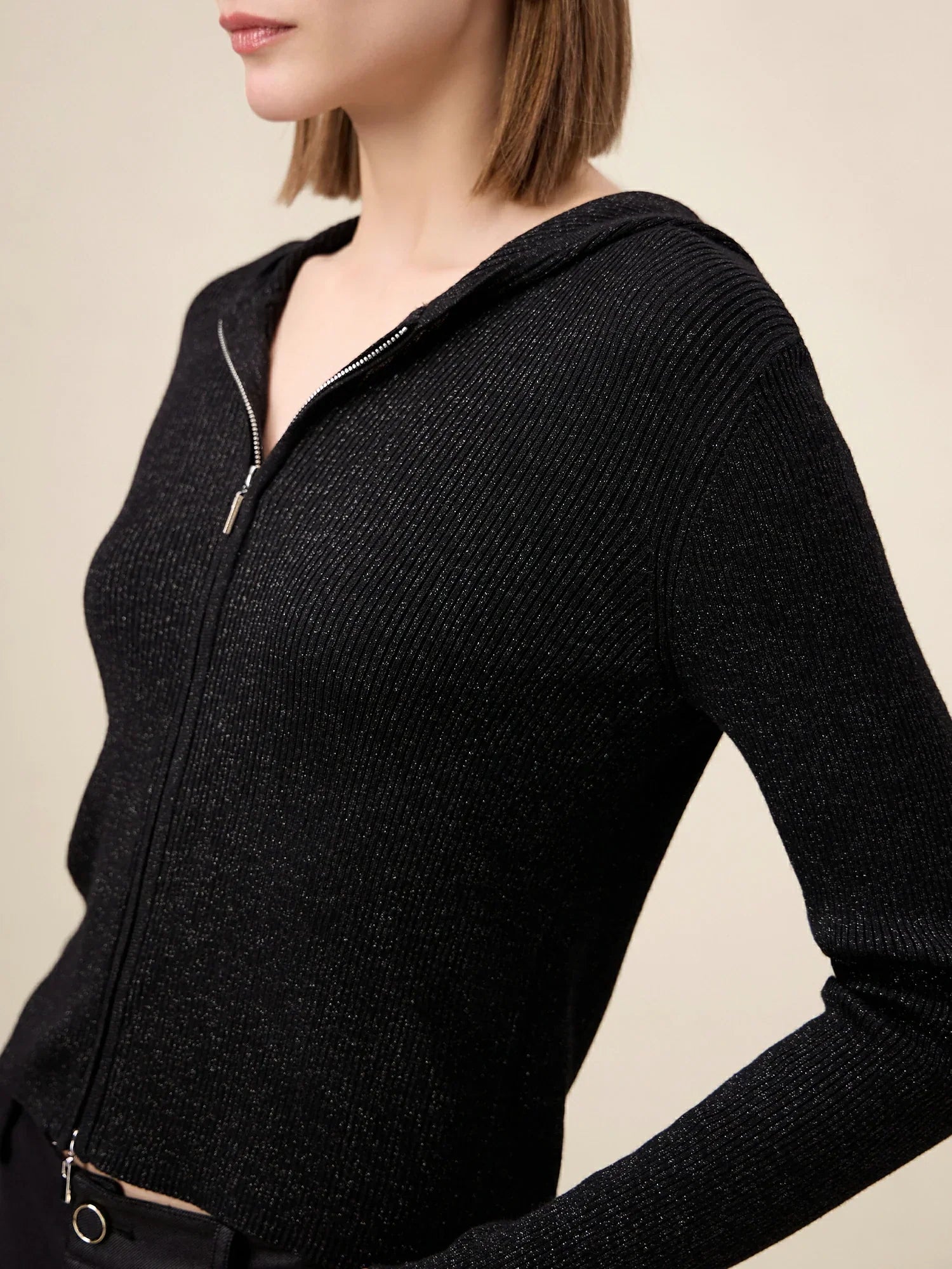 Amoretu Yün Altın Gümüş İplik Fermuarlı Kazak Ceket